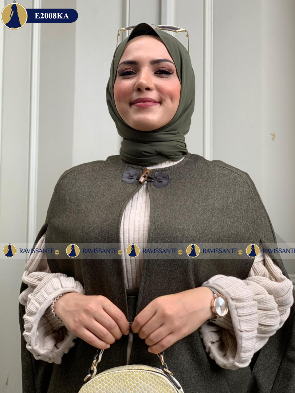Ensemble deux pièces Cape avec ceinture – Kaki – E2008KA