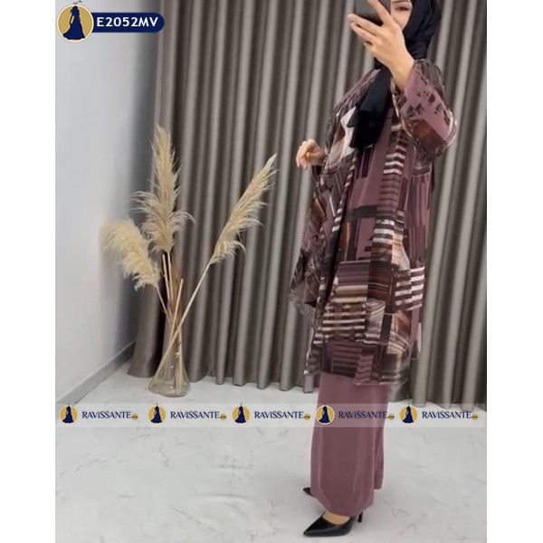 Ensemble trois pièces à Cardigan cloche – Mauve – E2052MV