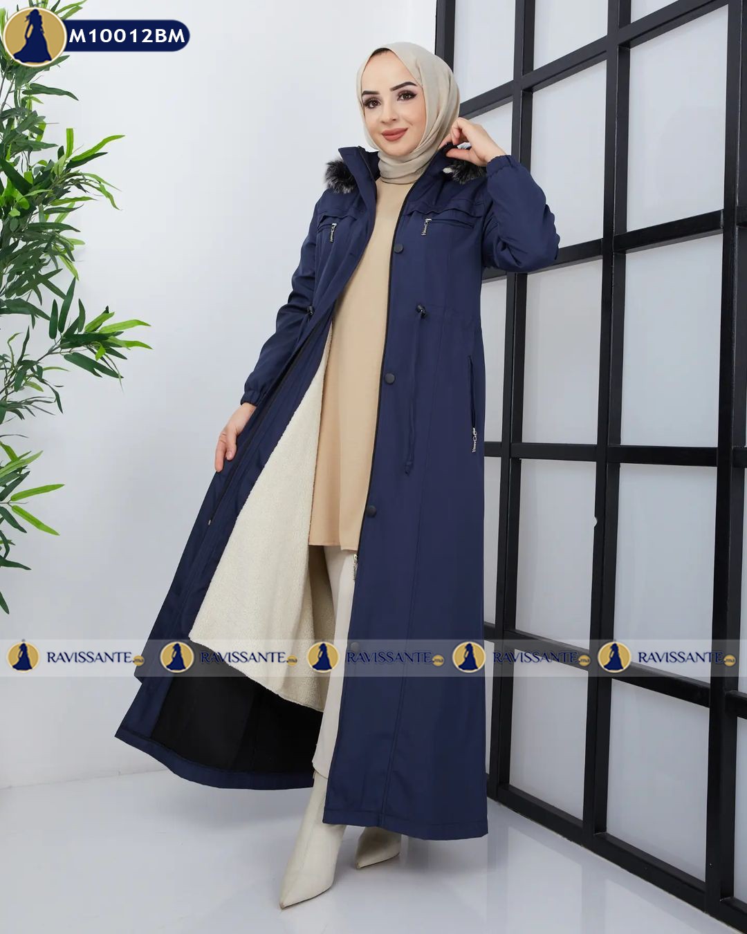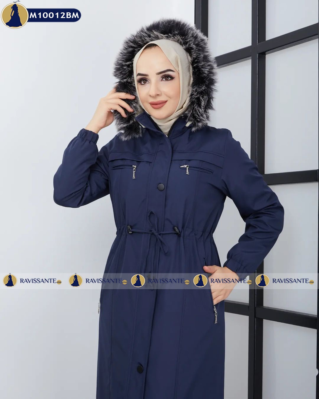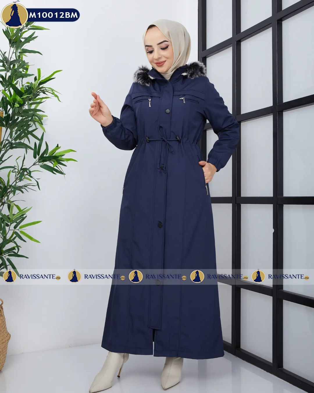 Manteau Imperméable Long à Capuche – Bleu-marine – M10012BM
