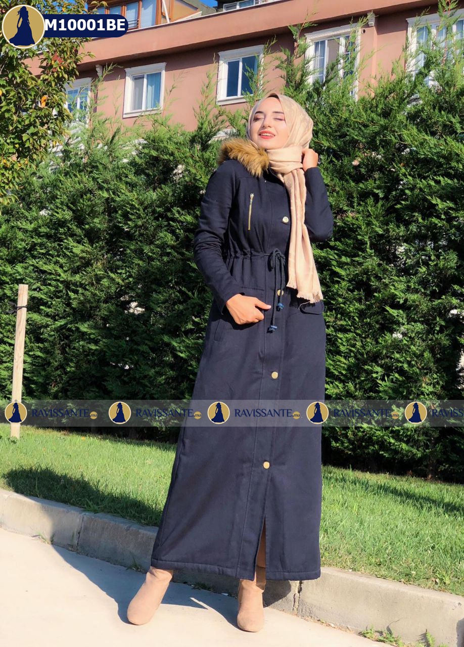 Manteau Long Rembourré à Capuche – Bleu Marine – M10001BE